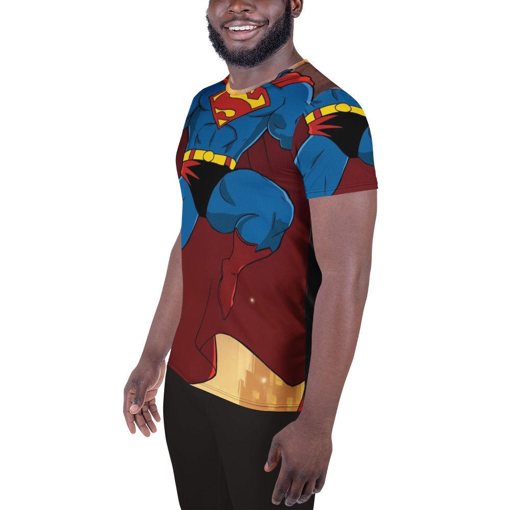 Step into the action-packed golden age of theatrical animation with The Man of Tomorrow 1941 Graphic Tee. This incredibly vibrant, full-panel t-shirt is a bold, wearable tribute to the groundbreaking animated shorts produced by Fleischer Studios in the early 1940s. Featuring a massive, brilliantly colored retro-comic illustration of the world’s most recognizable superhero leaping into action, this design perfectly captures the dynamic energy and classic Art Deco aesthetic that defined early comic book adaptations. Long before the era of modern CGI blockbusters, these legendary, painstakingly hand-drawn shorts introduced breathless theater audiences to a hero who was faster than a speeding bullet and able to leap tall buildings in a single bound, forever changing the global landscape of pop culture.